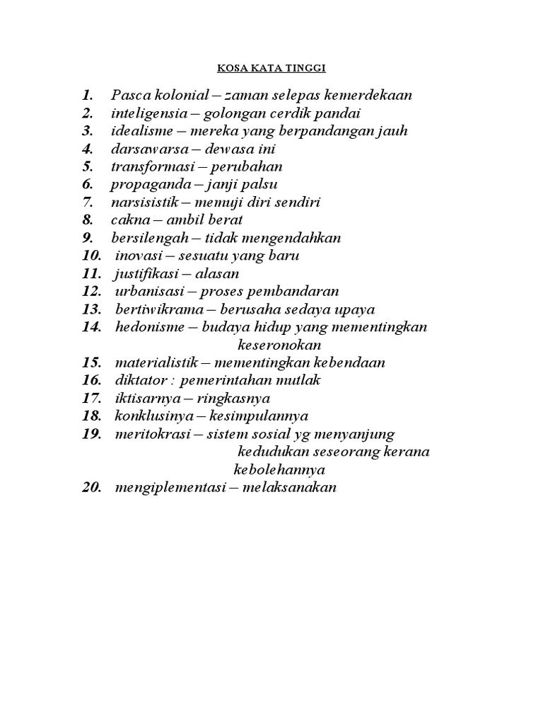 Belajar kosa kata bahasa Inggeris tidak memerlukan kesemua 600000 kad imbasan. Senarai Kata Berdarjat Tinggi. PENANDA WACANA UNTUK MEMULAKAN AYAT PENDAHULUAN KARANGAN.