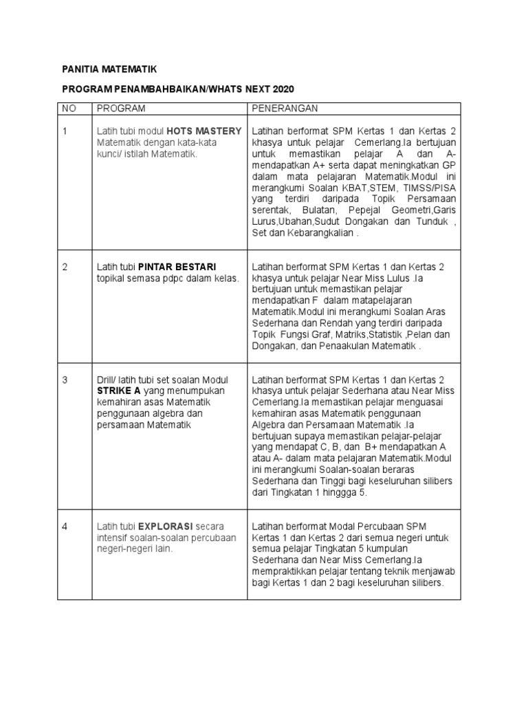 Latihan Latih Tubi Matematik Tingkatan 1 JawapanKSSM. BIL KEUTAMAAN INTERVENSI SENARAI KELAS MURID SASARAN PELAN KONTIGENSI UNIT TARIKH MULA TARIKH AKHIR 1 BIDANG BAHASA GILAP PERMATA BAHASA MELAYU 8 Daripada 45 Orang Pelajar Mendapat Minimum A- Berdasarkan ETR Kelas Tambahan Kem Mumtaz. Kajian ini memberi impak positif kepada penyelidik murid pemulihan dan sekolah.